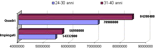 Per gli impiegati notiamo che l’aumento di anzianità professionale, almeno per le prime fasce, non comporta un significativo aumento della retribuzione, anzi, l’impatto retributivo è decisamente inferiore a quanto osservato normalmente in altre professioni, anche se le cose potrebbero facilmente e comprensibilmente cambiare nel prossimo futuro, quando i profili professionali all’altezza dovrebbero progressivamente aumentare.